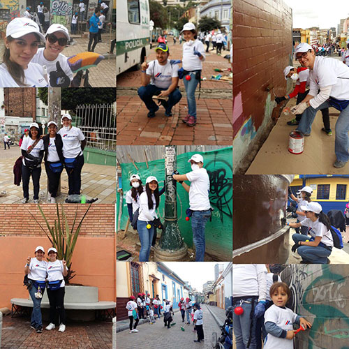 Empleados, familiares y amigos de CEMEX, Citi, Bavaria, Coca Cola FEMSA, Gas Natural Fenosa, Telefónica y Terpel; y 17 entidades del Distrito se unieron en la jornada más grande de trabajo voluntario que se ha realizado en la capital del país. 2.500 voluntarios desarrollaron actividades en favor de la recuperación del espacio público y el patrimonio del Centro Histórico de Bogotá.